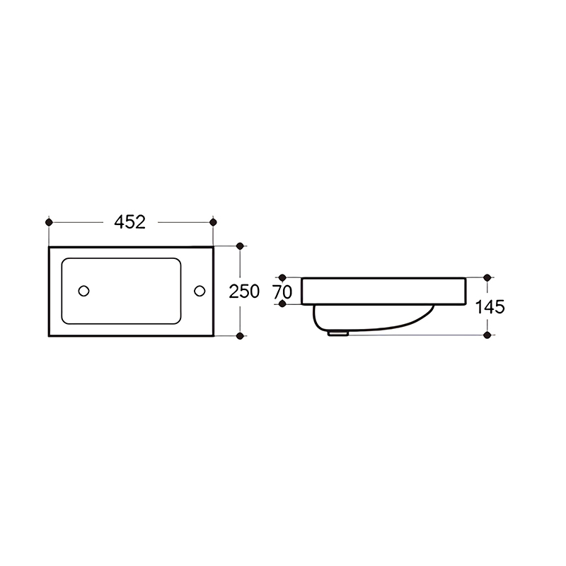 • Rectangular overflow and single tap hole